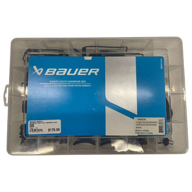 Maintain peak performance with the Bauer Konekt2 Goalie Skate Hardware Box (2024), your essential repair solution for Konekt2 skates. This comprehensive kit includes genuine Bauer straps and screws for seamless on-ice fixes, ensuring durability and precise compatibility with all Konekt2 components. Never miss a save due to gear failure.